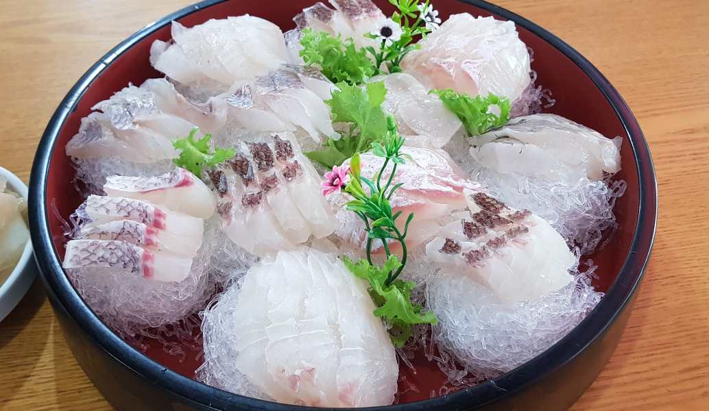 한 맛을 느낄 수 있는 생선회.(매운탕 포함)